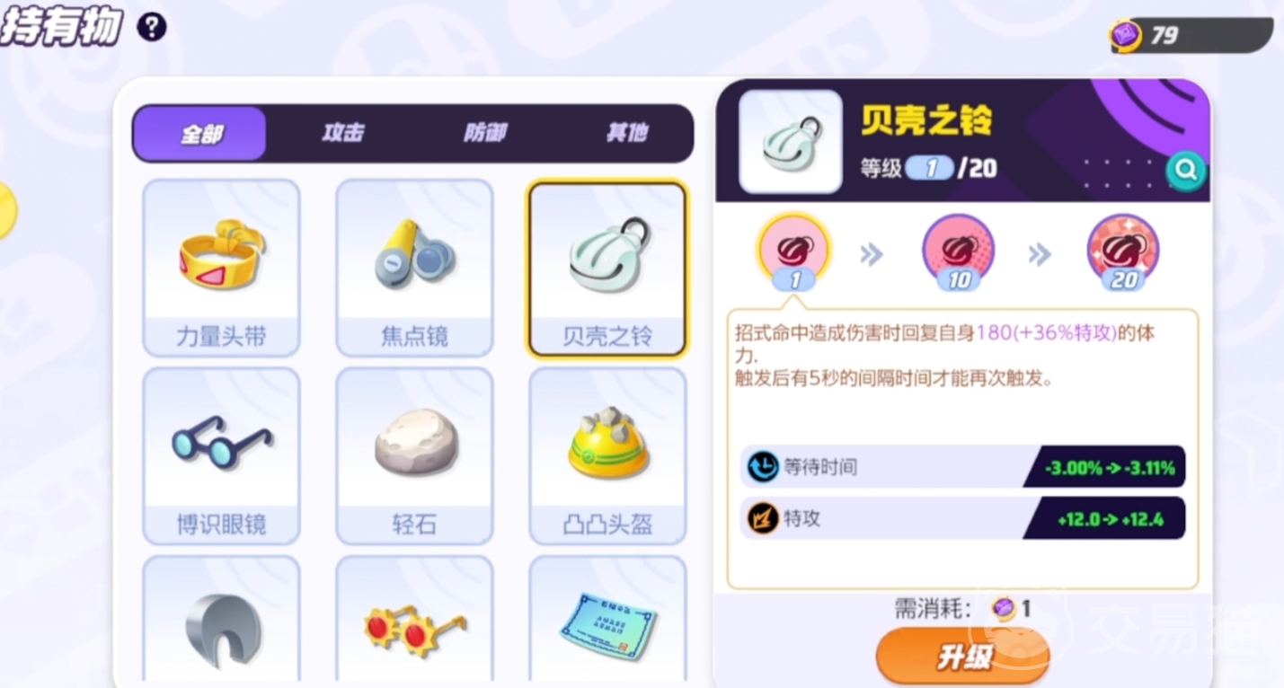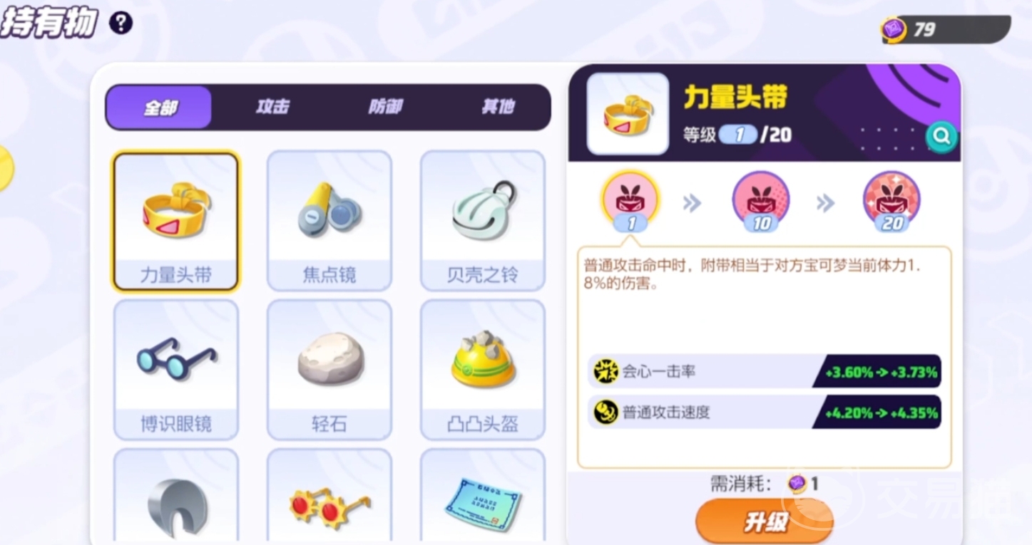 它可以增强这些宝可梦的技能伤害,如果大家选择的宝可梦需要频繁使用技能并且依赖技能输出,那么贝壳之铃也是一个不错的选择,它可以减少技能的冷却时间,此外对于那些特攻较高但不擅长通过投分叠属性的宝可梦,如冰伊布,博识眼镜则是一个理想的选择,对于物攻输出型的宝可梦,力量头带是一个适合大多数射手的选择。