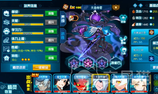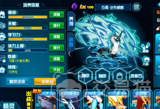 玩家可以参加精灵王系列,开局就可以使用龙之战神技能,然后将王之哈莫强化到5级。可以有效降低精灵王的攻击伤害,而这一个技能还可以有效提升特性,并且能够迅速的恢复体力。等到特性提升到5级之后,配合第5技能就能有机会把精灵王打败。要是面对强化成果特别多的精灵王,也可以使用狂龙击杀的方法,可以有效去除增益的成果,能够保证第五技能打出一个最大化的输出。