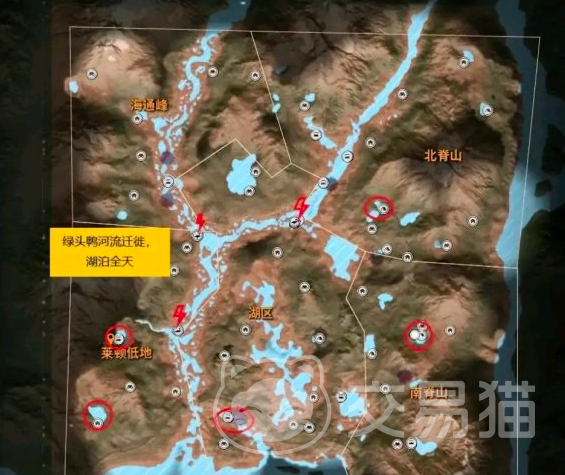 根据他的习性不能推断在地图当中莱顿湖区和雷文海岸区出现绿头鸭的可能性是非常大的,其中在莱顿湖地图的右上角的背脊山附近可以说是绿头鸭的集中营地了,玩家可以沿着该山脉附近的河流进行沿途搜索,差不多都在地图靠上的位置,而且从地图的三叉位置开车一直往上跑,就可以有不少的收获。而在雷文海岸的话,玩家们可以沿着海岸线进行鸭子的收割,而在这些地点外,除了可以拿到绿头鸭,凤头潜鸭和绿翅鸭也都是非常好捕捉的,说不定会带来意外惊喜。不过要想成功捕获绿头鸭也是需要一定技巧的,小编将从两方面和大家聊一聊。