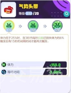 气势头带能够在喷火龙体力低于25%时提供每秒已损失体力6%的恢复效果,且没有次数限制,这个效果需要间隔15秒才能再次触发,但这对于提高喷火龙的容错率非常有帮助,毕竟在激烈的战斗中,喷火龙可能会受到大量的伤害,而气势头带能够帮助它持续更长时间地进行战斗。