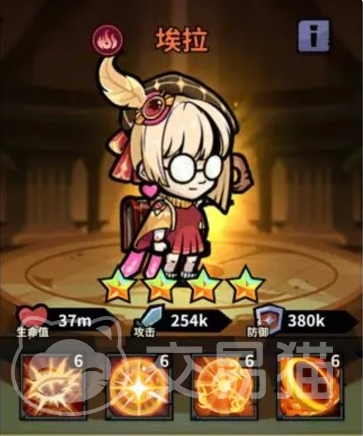 埃拉则是队伍中的辅助角色,火系英雄,她是很多玩家第一个通过钻石招募获得的金色英雄,埃拉的技能主要是给敌人施加负面效果,这在战斗中非常有用,她可以降低敌人的攻击力、命中率和攻击速度,从而削弱敌方的整体战斗力,最后是乔丝琳,她可以说是当前版本的最强光系输出,她的技能属性都是T0级别的,特别是她的光明圣斩技能,可以对敌方单体造成最高4000%的伤害,这样的强度在其他角色中是很难见到的。