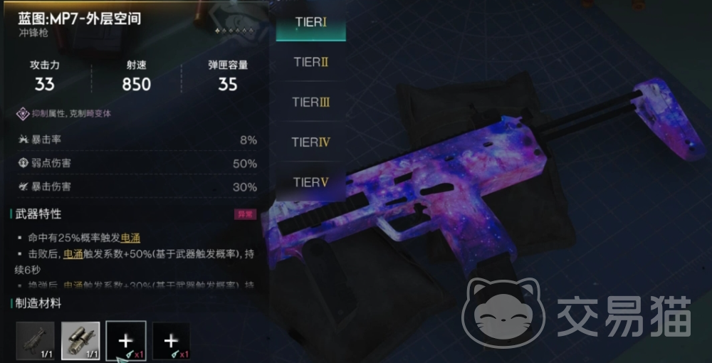 由于属于冲锋枪,所以高射速是其一大特点,mp7外层空间可以通过武器箱得到,能都在短时间里打出极高的伤害,弹匣也相对较多,用于刷本时非常高效,能高频率触发电涌伤害。