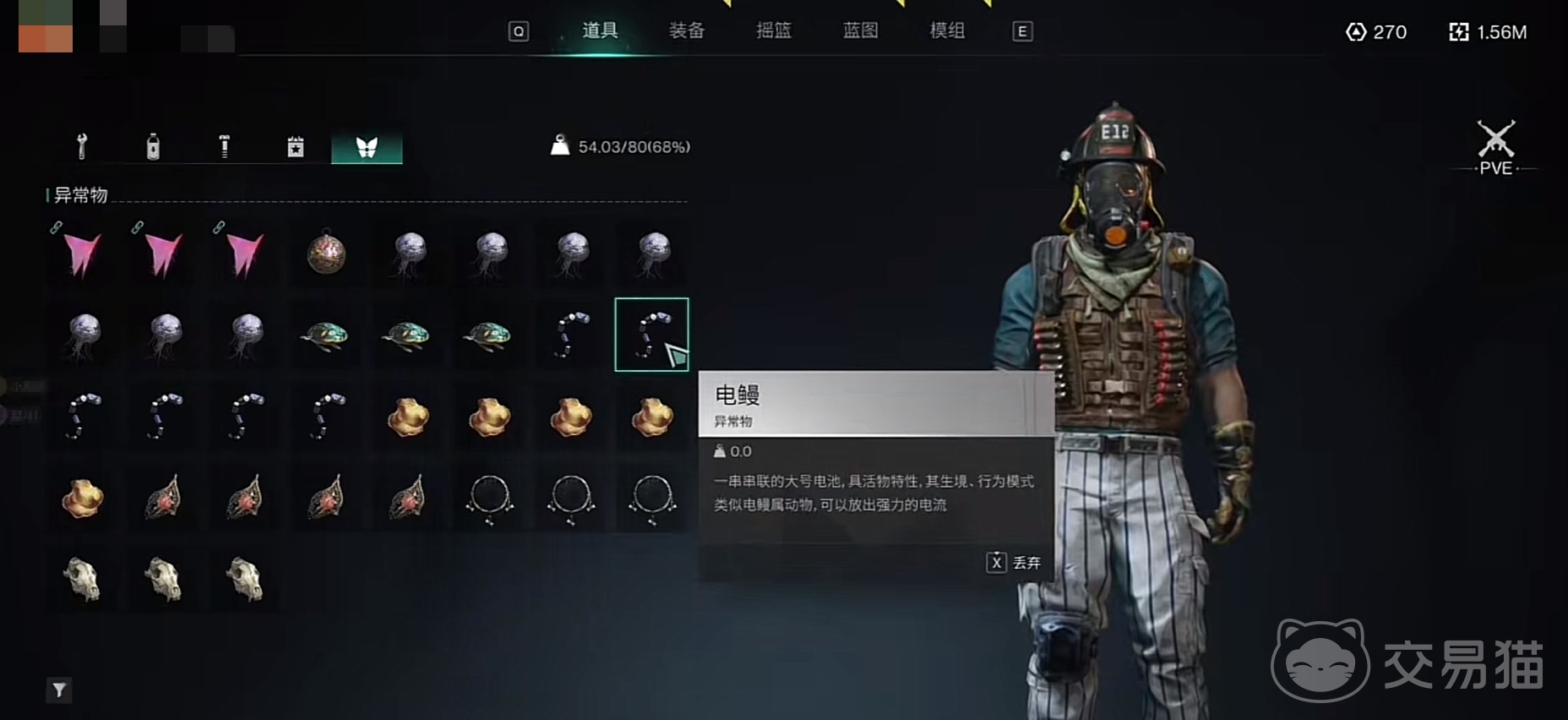 电鳗的主要获取方式就是钓,主要的作用就是提升发电机的功率,一般钓取之后都是直接放在自己的小屋内收容,每个物品想要收容的话所喜欢的四要素都不一样,电鳗主要是蓝色的光、机械的声音、温暖的温度、还喜欢动物。可以通过观察它的收容度和异常能量,正常的收容需要一个蓝色的筒灯和蜡烛;如果收容度比较低的话,可以放一个羊驼玩具,都可以在家具制造台上制作。