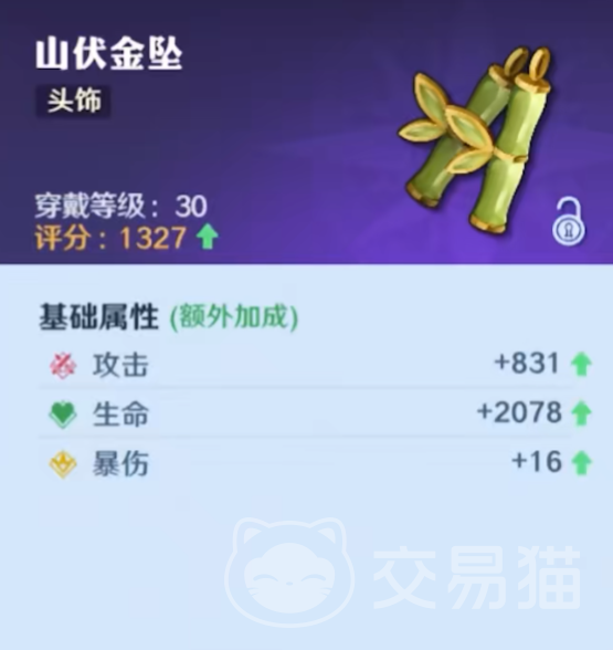 这是一件头饰,穿戴之后可以获得额外的基础属性加成。例如增加几百点甚至上千点攻击力。然后也能提升2000多点生命,并增加爆伤。不过具体的数值加成也要看装备的等级,强化后可以升级,也能够进阶更优秀的品质。
