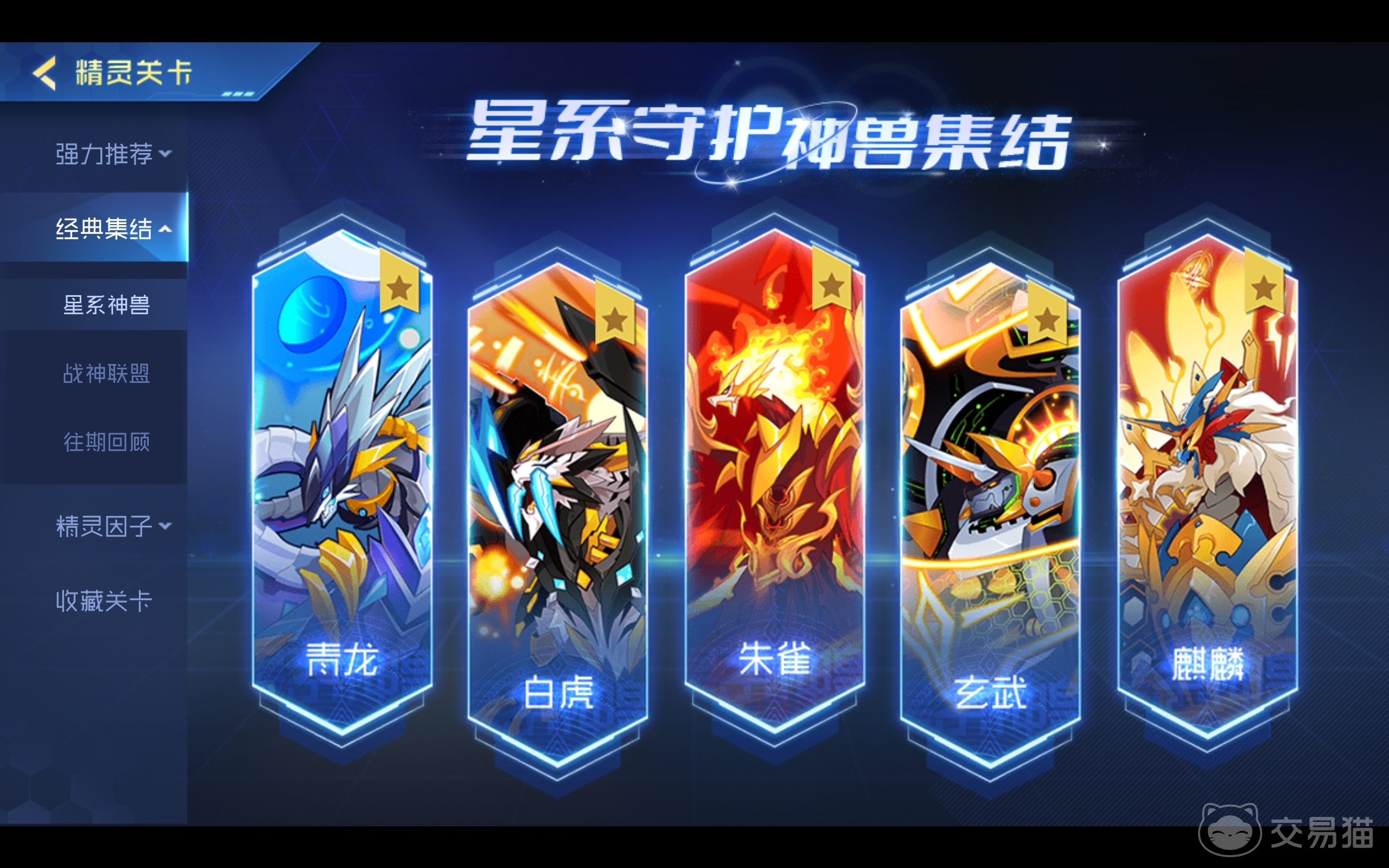这个模式下包含了两个玩法,一个是星系神兽,另一个是战神联盟,系统还会把之前上线过的活动放在往期回顾内,方便大家去进行查找。在星系神兽这个模式中,一共包含了青龙、白虎、朱雀、玄武和麒麟这五个部分,玩家选定一个进入后,就可以跟着指引完成相关的任务,就拿青龙来说,玩家在一天内完成龙威在天、亢龙有悔和龙战于野这三个关卡后,就能取得青龙进化的资格,之后每天再去重复挑战这几个关卡,就能收集到足够的气魄去进化这个精灵了。