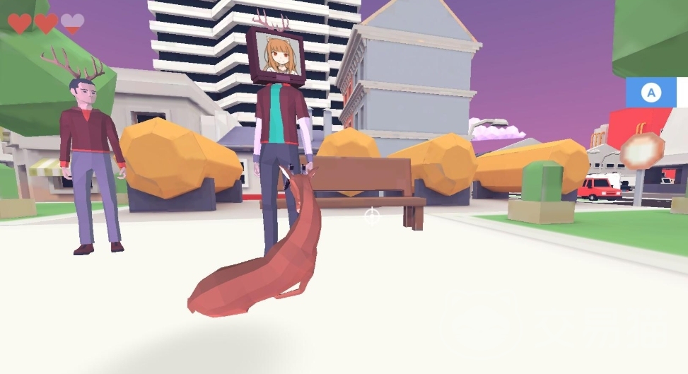 当然大家也可以利用自己伸缩自如的鹿头当小镇上的一个有好邻居,像蜘蛛侠一样在镇上荡来荡去,在小镇中探索的时候来到奶牛附近的蓝光处,就可以和它对战奶牛黑白棋小游戏,这个小游戏玩法还是比较创新的,棋子就是奶牛,而奶牛也是随机移动的,胜利的法则就在奶牛移动的随机性中,虽然规则很简单,但趣味性很高。