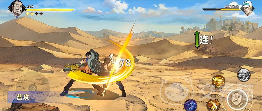 作为沙漠之王的他同样是勇气角色,拥有四格奥义点,他的普攻共有四段,其中第三段会有短暂无敌状态,并对敌人进行抓取攻击。技能一“沙尘暴”,点按技能键后,他利用果实能力,在前方形成一个强力沙尘暴,攻击使其浮空;也可以长按技能攻击使沙尘暴向前移动,但是沙尘暴会随机向Y轴上下移动,命中的敌人会被吹飞。