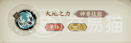 夔牛这个神兽拥有自己独特的技能,名为”大地之力”,该技能也表明了这个角色蕴含的强大的力量,这个技能使用后会使用大地之力给敌人带来毁灭性的打击,如果对单体敌方攻击,那么一招敌人就会直接被它的铁蹄击败,命丧它手。
