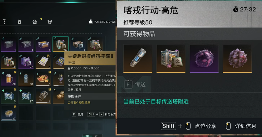 这里词缀是随机的,不一定能获得玩家想要的。如果事件没有做好,就得不到“关键后缀模组箱”这个金色箱。不是高危的公共事件,像是卡戎、空航母入侵这些会给到紫色的模组箱。