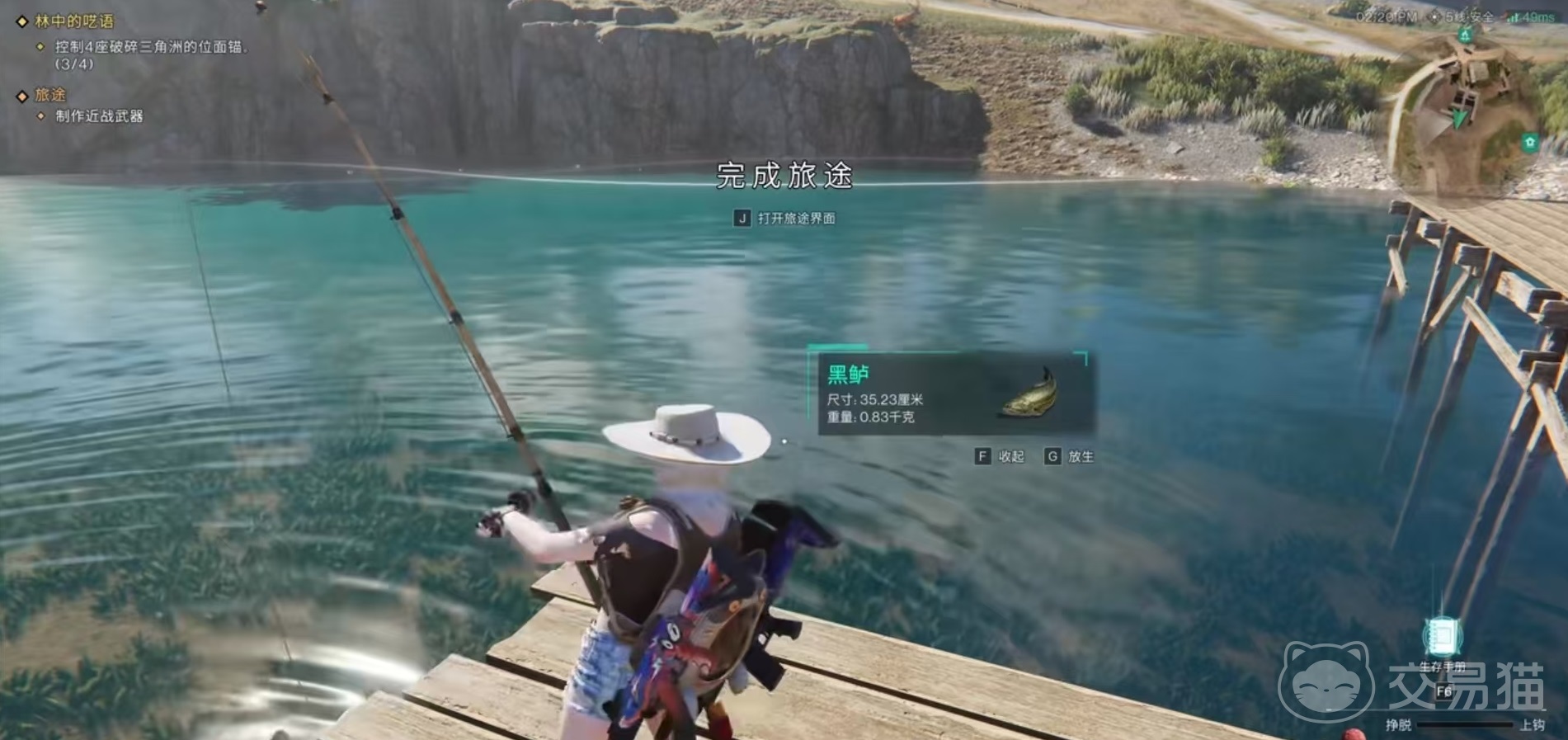 接下来是钓鱼的简单操作,大家站在水边,直接使用快捷栏里的鱼竿,要根据自己要钓的鱼来选择相应的鱼饵。如果有多个鱼饵,可以直接进行切换。在装配好鱼饵之后,可以通过长按的方式选择吊杆的抛杆选点,选择合适的位置进行抛杆,抛竿之后可以看界面的右下方。钓鱼会分成两个状态,分别是挣脱和崩断,在鱼上钩之后可以观察鱼的游动方向,按照反方向拉杆。例如鱼往左边游,那就朝右边拉杆,朝右边油就朝左边拉杆。通过转动视角的方式就可以,这样一番操作就可以直接将鱼钓上来。