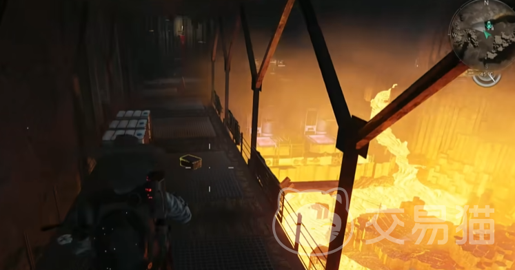 来到洞穴内部后左侧的铁架平台上可以看到装备箱子,从上往下将能摸的都摸了,一路沿着走可以遇到一处铁门,门中有不少箱子。