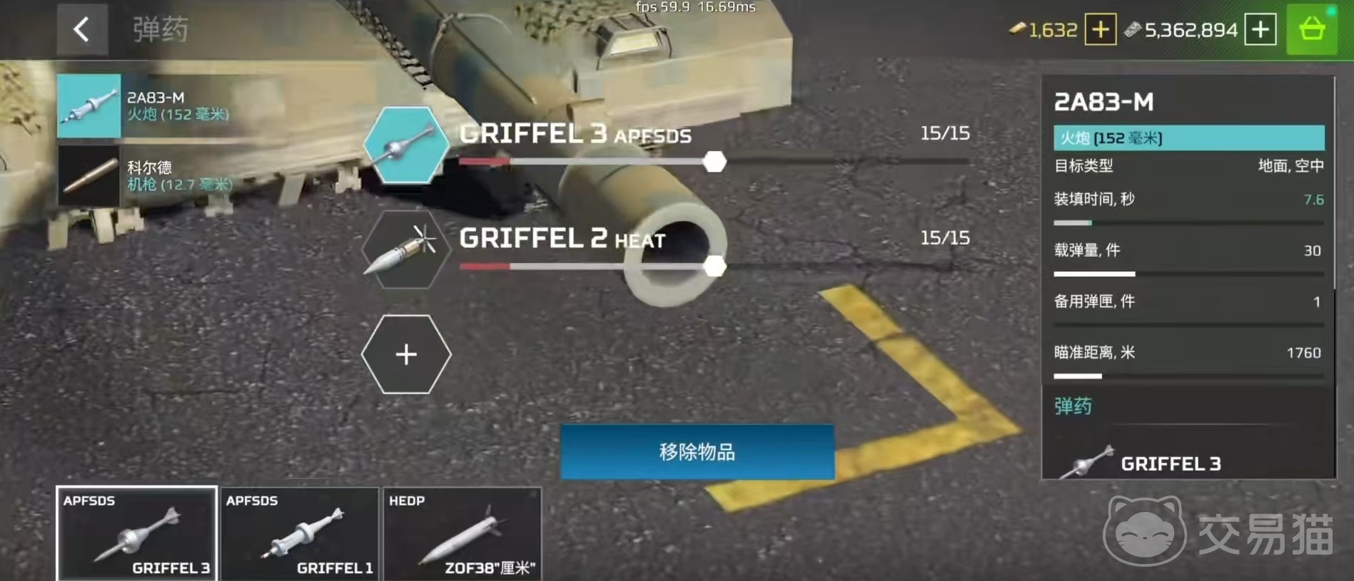它在速度方面可以达到75.2千米每小时,即使是倒档速度也可以达到75.2千米每小时,这样的机动性使它在前进和后退两个方向都非常自由。车体的转向速度为35度每秒,转弯的时候手感也很舒适。它所装备的那1门2a83-m火炮,无论是地面和空中目标都可以打击,装填时间为7.6秒,瞄准距离1760米,从数据来看,装填时间是比较长的,但对于一门主炮来说也是可以接受,尤其是在解锁了稳定脱壳穿甲弹之后,伤害、穿甲、模块损伤等方面达到了惊人的数值。1200点的穿深,目前没有同级别的坦克装甲可以防护住,至于其他的战车、直升机等更是一打击穿。