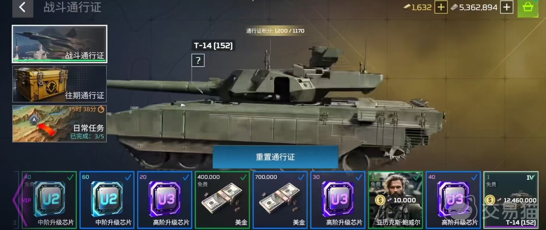 之所以要让大家重点介绍t14这款坦克,是因为它是属于通行证坦克类型,这也就意味着玩家可以通过很小的代价来获取,而且它在实战方面确实非常强势。作为俄国主战坦克,T14在世界上广泛赞誉,游戏中的实力自然也不容小觑。这辆免费车辆装备了152毫米口径的主炮,这样的火力在战场中绝对是令敌人非常头疼的。除了恐怖的火力之外,在防护和速度方面也都非常均衡。