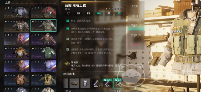 3、武器配件,大部分的武器都可以装配件的,能让武器变得更为强大。4、理智和饱食,角色装备低于当前等级,或者被攻击,踩在污染区域,理智值都会下降,会让血量降低,可以通过吃理智药物解决,饱食度和水分低时,角色移动速度回很慢,对于角色的水分和理智都需要时刻关注。