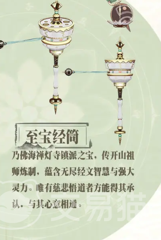 琉璃筒流珠的来源参考是至宝经筒,至宝经筒是佛海禅灯寺镇派之宝,据传是开山祖师炼制,蕴含了无尽经文智慧与强大灵力,只有慈悲悟道者才能被其承认,与使用者心意相通。