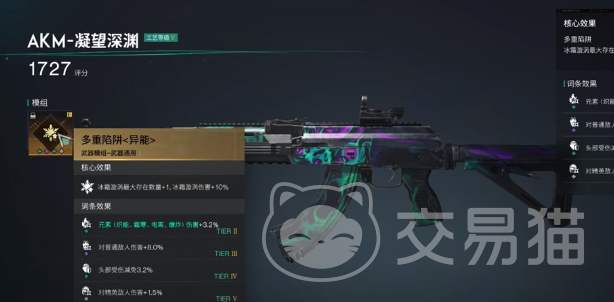 模组方面武器可以选择多重陷阱,一般都是作用于打双倍冰霜伤害。在六大建中,头部可以选择异常专家增伤,面部可以用持续冰封去增加冰伤害,上衣只需要选择一个有磁条的元素即可。裤子可以选择异常增幅,换弹之后能够获得元素伤害。