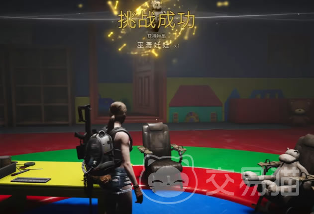 回到原来的位置找到初始的小丑,与他玩游戏,这里就只有一个选项“我来开枪”。选择后拿到手枪,一枪崩了这个小丑;挑战任务完成,同时获得收容物“巫毒娃娃”。