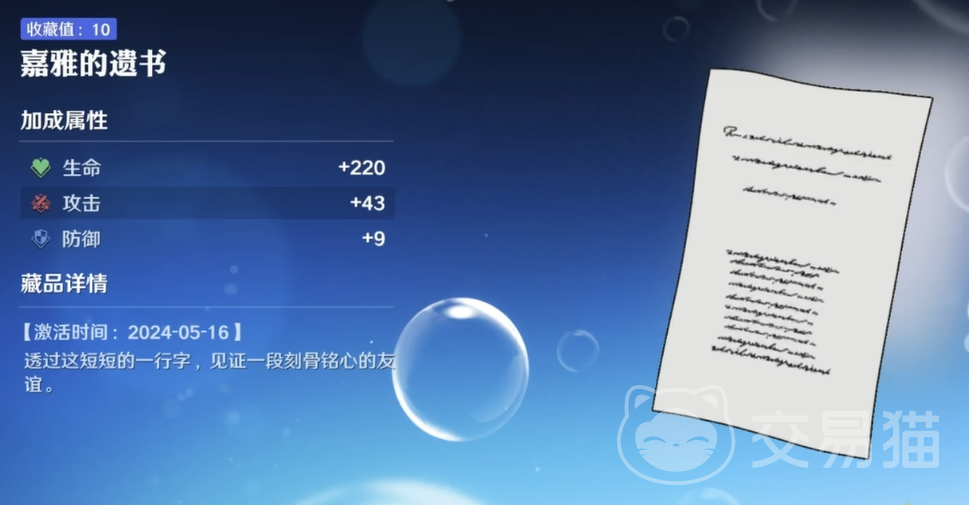 主线3-4中,遗书将直接出现在你的收集列表中。这是一个带有浓厚情感的藏品,它将嘉雅的命运与梦想紧紧连结,也让人不禁感慨航海世界中那些动人的故事。