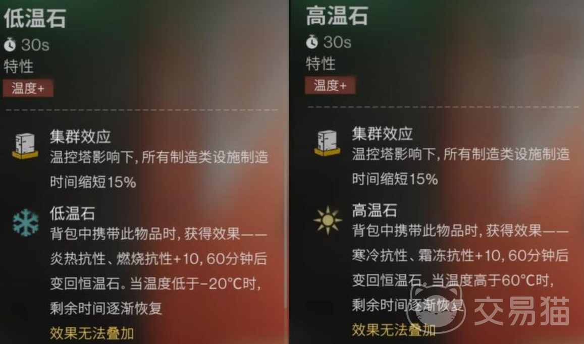 热能石是抗寒路上的头号神器。你可以先用恒温石作为基础,再添加木炭提升它的效果,从而打造出威力更强的高温石。这就像给自己随身带了一个“小火炉”,简单又高效,轻松帮你度过寒冷的难关。
