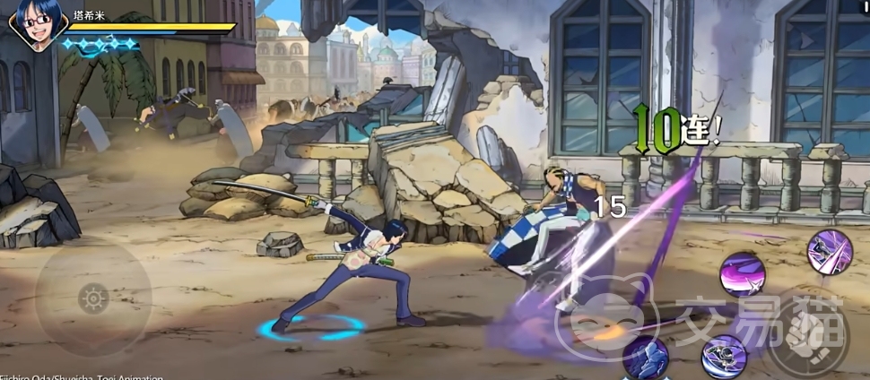 而对于像狮子、索隆这样的近身攻击角色,她则可以使用二技能进行起手,但需要注意的是,在使用突进技能时,要把握好距离,避免因为贴得太近而被对方抓住机会起手,当敌方使用替身技能时,塔希米也可以利用强化剑气来保护自己,也可以用一技能来起跳,这样偶尔可以躲过一段攻击,如果求稳的话,可以选择贝壳援护反手或者直接跑路。