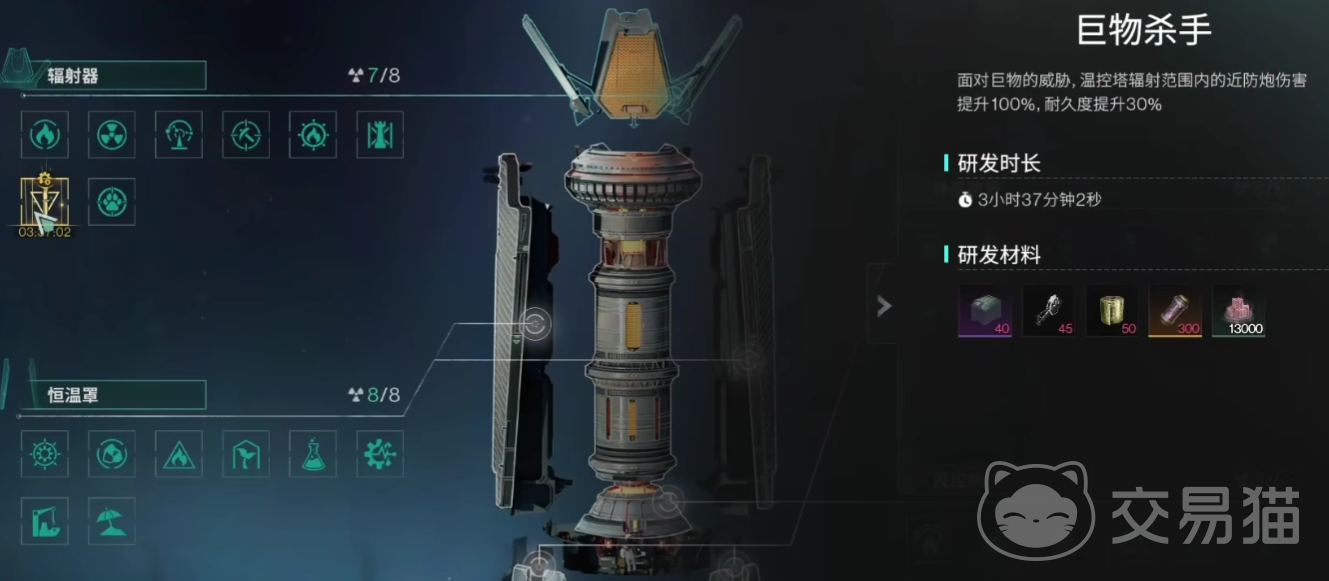 值得一提的是在温控塔之中还设置有各类权限装置,这些权限装置可以提升玩家专属的游戏技能天赋,例如游戏中的净化天赋和温度控制天赋等等,在这些天赋当中,最值得玩家提升的是巨物杀手。