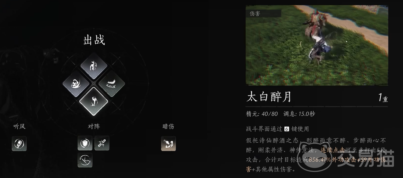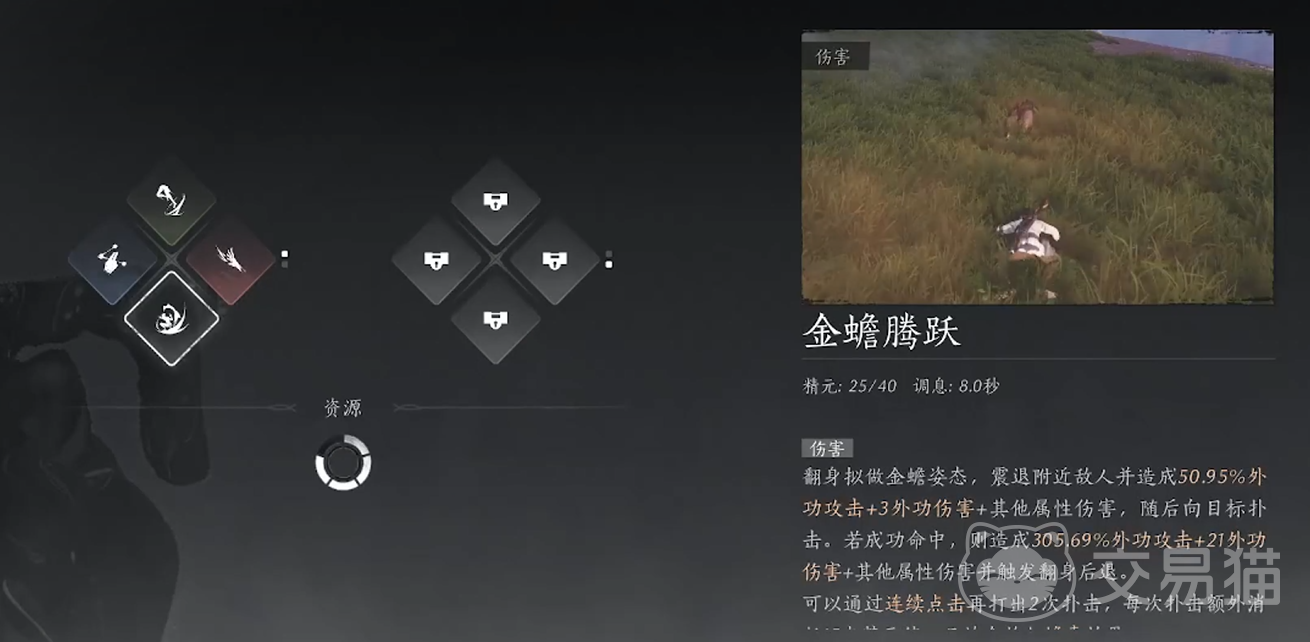 这个战斗奇术的获取具有冒险感。玩家还得前往浣石浦的上方水域区域,细心探索可以发现一个隐藏的观察点。靠近观察点后,系统会提示“观察”,此时便可触发偷师环节。在这里,你将亲眼见证武学的精妙,并学会这套轻功身法。掌握金蝉腾跃后,无论是在战斗中追击敌人还是逃离险境,都能如蝉脱壳般迅捷无比。