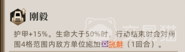 然后就是盾卫招牌技能血量限制嘲讽。该技能作为盾卫的核心机制,可以在移动后对身边一定距离的敌人产生嘲讽效果,使其优先进攻盾卫而非前往点破脆皮输出位。该机制对于美式战棋环境至关重要,能有效地保护己方后排及切入位位置。但是该技能并非无脑强且存在局限性。