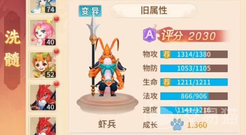 如果你已经获得了一只宠物,但是对它的属性不太满意的话,那么你可以通过洗髓的方式来改变它的各项属性,包括成长、资质和技能个数等,但神兽和圣兽的属性最好是不要洗,因为这两种等级的宠物初始属性就已经非常够用了,再洗髓也没有什么意义。一只宠物可以洗髓的次数是无限的,并且每次结果都不相同,如果你对这一次的洗髓结果不满意,那么是可以继续洗的,如果感到满意的话,可以直接点击保存。洗的次数越多,宠物的各项属性变成极品的概率也就越大,不过如果小伙伴们运气够好的话,说不定洗一次就能获得一只极品宠物。