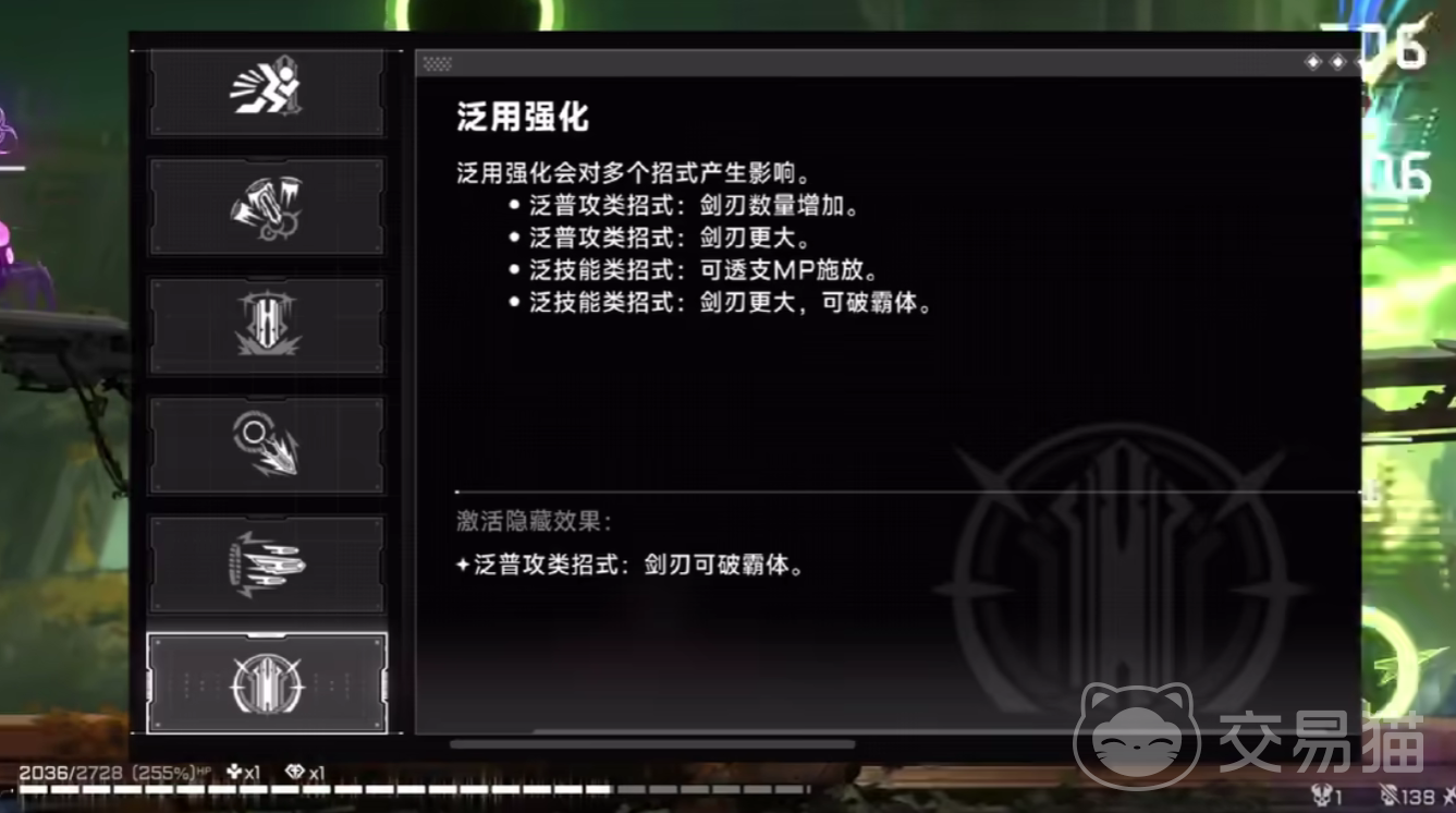 在进行了三连击之后,她的攻击范围会从五十码变为两百码,并且ES还能够使用武器进行跳跃,在助力跳跃之后,甚至能够完成四段跳,在跳跃后,玩家可以操控ES对下方目标使用重击,重击效果判定达成后,敌方目标不仅会被击飞,还会被烙印上创伤buff,下一次ES的蓄力攻击就能够对他造成双倍的伤害。