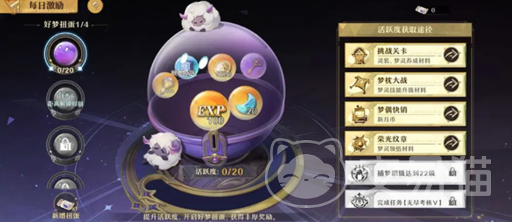 初入梦乡,玩家会发现大部分系统功能都集中在右上角的快捷界面,这里是你冒险旅程的核心操作平台。从关卡挑战到资源收集,再到梦灵培养,所有关键功能都在这里。 关卡挑战是获取角色升级材料的重要场所,还有用到技能强化和角色进阶里面的资源。同时,完成新手引导任务还可以将梦境研究系统解锁,该系统能帮助你解锁更多游戏机制,为你的冒险保驾护航。