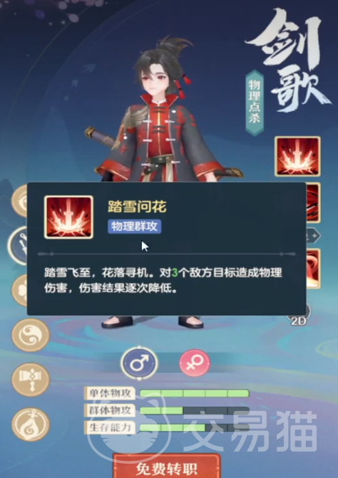 剑歌是游戏里面主打物理输出,这就非常适合一些喜欢在战斗的时候输出的玩家,除了有这个物理输出能力之外,在对战的时候还能给对手带来高额的爆发伤害,可以通过这种方式在对战的时候秒杀对手,属于是所有游戏职业里面比较强劲的一个,比较喜欢输出类玩法的就可以尝试使用剑歌为队伍里面的主力。