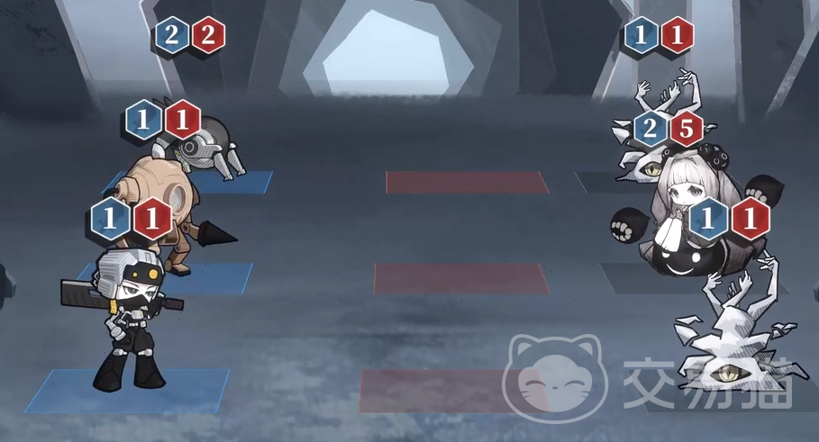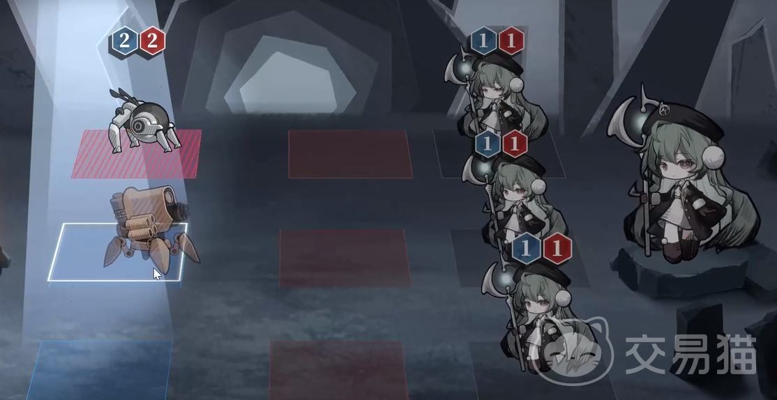这个关卡敌我双方的生命值比例依然是15比10,一开始我们可以将治安员放置在地图上,虽然他的白值防和血都是1,但是他的先手能力可以让其一回合可以行动2次。并且在下一回合攻击会增加1点。接着来到下回合,玩家可以在中间的位置召唤一个异常体γ,它可以降低场上其他异常体的攻击1点。本次的敌人召唤的从属基本上都是异常体,所以这γ对于我们来说是非常有用的。接下来敌方会召唤出小红帽,我们可以选择召唤蜘蛛机器人。