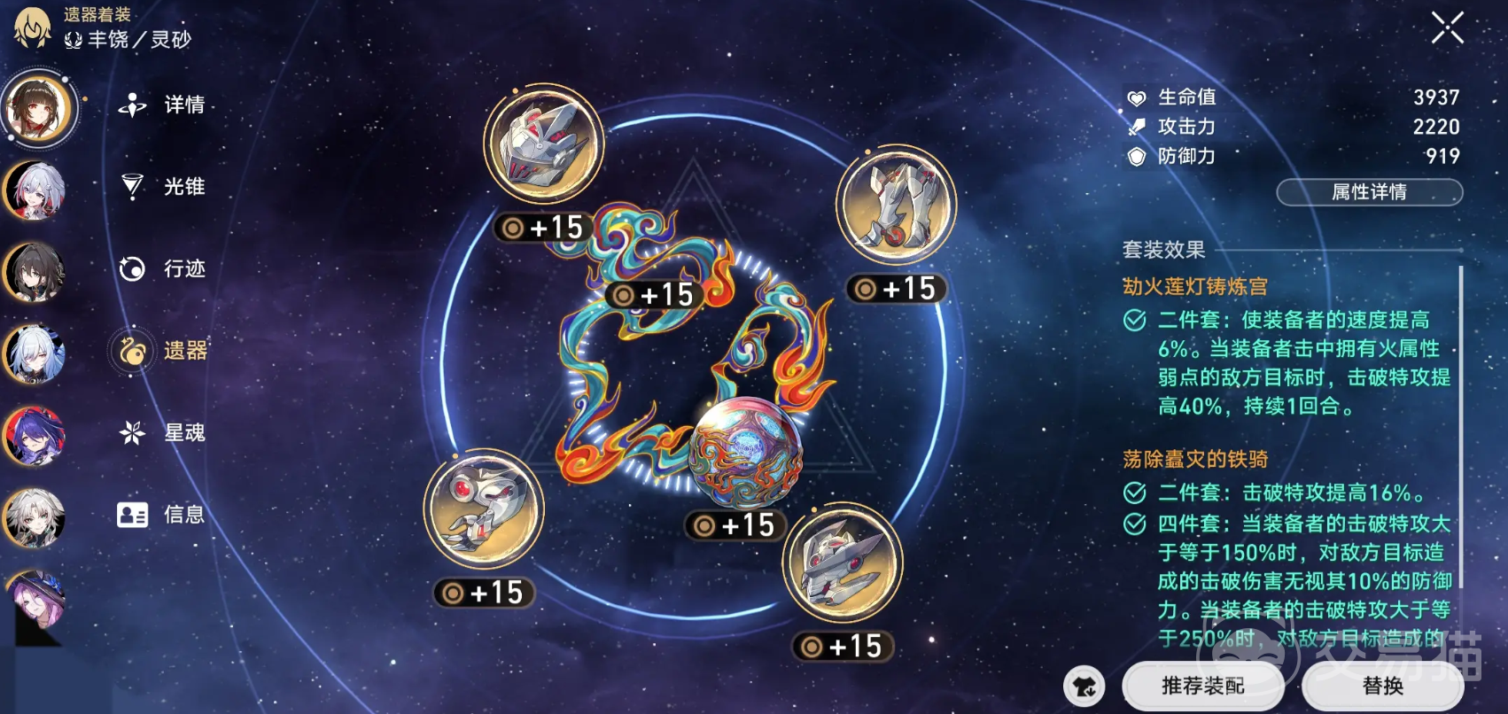然后是行迹材料,用于提升行迹,需要3000000的信用点,数量比较多,需要多加积累。命中的足迹准备8个,特定任务以及活动能积累。炽情之灵消耗18个,日常副本可以获得。69个星火之精,高难度挑战和活动里面会有奖励。