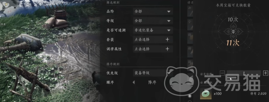 第四次测试加入了装备兑换,可以将多余的装备直接换成固定套装的装备匣,开出该套装的随机1个部位,每天可以兑换10次,用长鸣玉(绑金)可以增加100次,即110次。长鸣玉在交易行用宝钱可以购买,长明珠可以售卖换取宝钱。