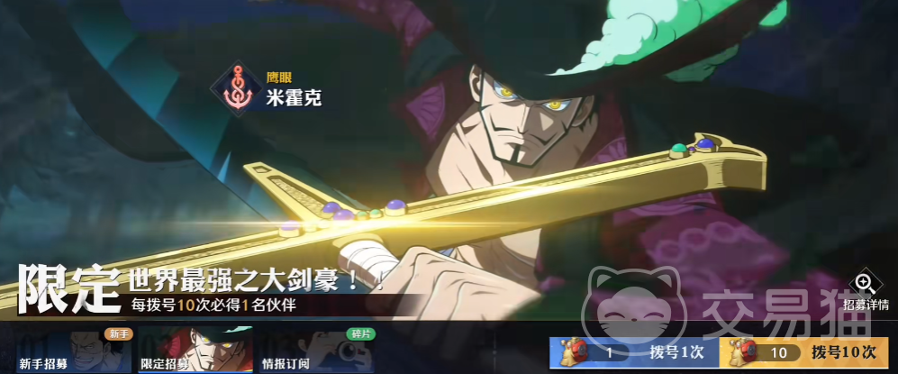 关于航海王壮志雄心限定招募建议就介绍到这里,目前公布的限定up池角色只有鹰眼米霍克这一个,强度很高,很值得抽。后续会是谁的up池,得要等公测消息了,鳄鱼、毒龙、卡普这些也都不错。