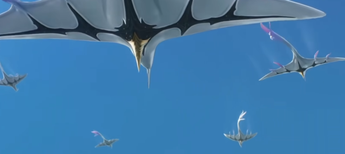 可以看到空中成群漂浮着形似电鳗和鲸鱼结合体的生物,或许是一种全新的声骸,或许在新的版本中玩家有机会直接在空中飞行,整个地图给人感觉像是末世中保留的一处绿洲。