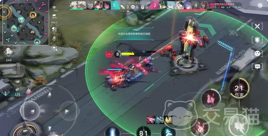 野区是又一战略点,野生机器人与功能性建筑遍布于此,杀死野怪可获得更多的资源,建筑道具可用于扰乱敌方或者提升己方战力。每一个战体都有5个技能,通用技能有2个,全部战体都有一个共同的特点,在对战体进行对战之前,玩家要根据战局的需要来选择适合自己的通用技能如位移,控制或者生存类等。通用技能并不在刚开始时都会解锁,它需要角色等级达到一定程度后才能使用。其余3个技能为战体专属,包含1个大招,一般四级以后解锁。技能的配合与运用是作战的中心,同时也决定着战体作战的样式与位置。