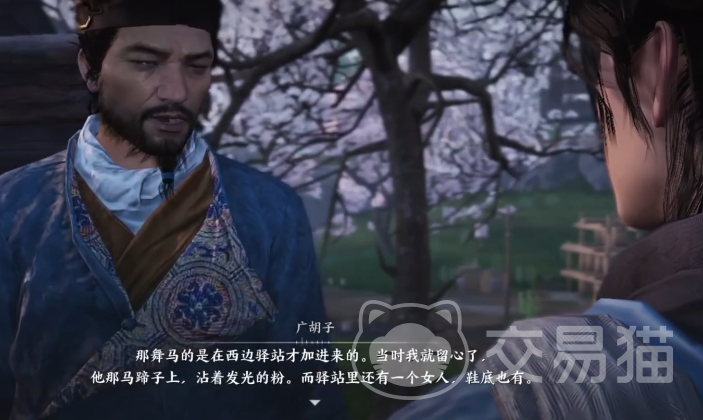 当大家拉到第三章后,需要先去找一位叫做广胡子的npc,之后需要与其对话通过对话可以了解到,驿站中进来了一位女人,这女人脚底有粉在得知了这则信息之后,大家需要根据标点前往下一个位置。