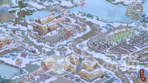 美术风格十分讲究。游戏内各种建筑,器物等设计均参照古籍上的记述,试图恢复一个古风盎然的桃源世界。村落里茅草屋林立,小桥流水,竹林深处凉亭连田的布置也透出古韵。四季的变化更令人惊奇,春有桃花开、夏有蝉鸣、秋有落叶铺小路、冬有雪上顶。这类照片不但美观大方,而且使玩家在管理村落的过程中也可以体会到悠闲的生活气氛。