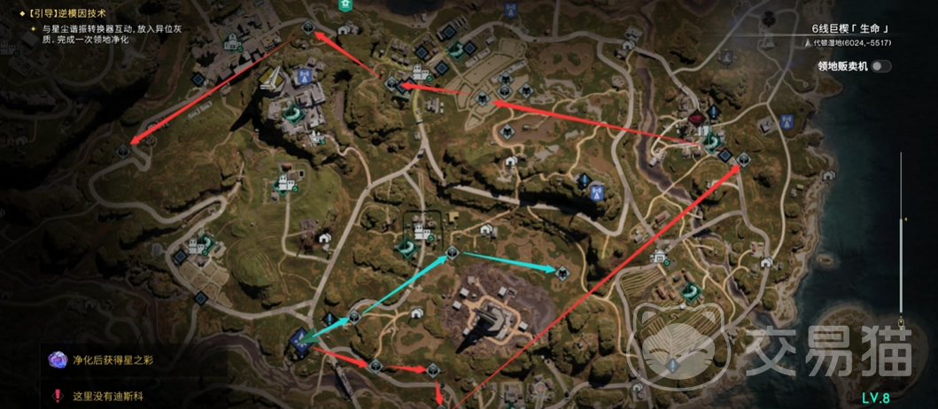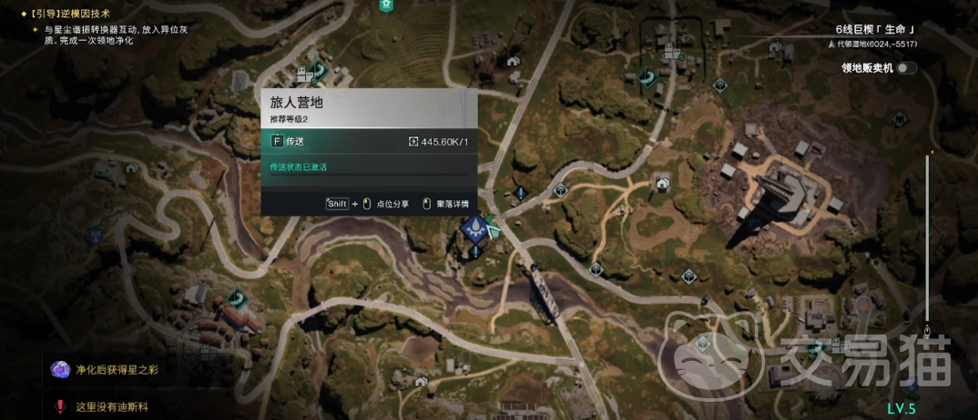 一个大致的路线图放在本文的图中了。在开始之前大家也要做好准备工作,至少携带两个爆炸物,手雷C4都行,动作表情也需要装备到快捷栏,方便后面和黑水交互。从旅人营地作为起始点,出门前在右边的商人这里买一下配件。