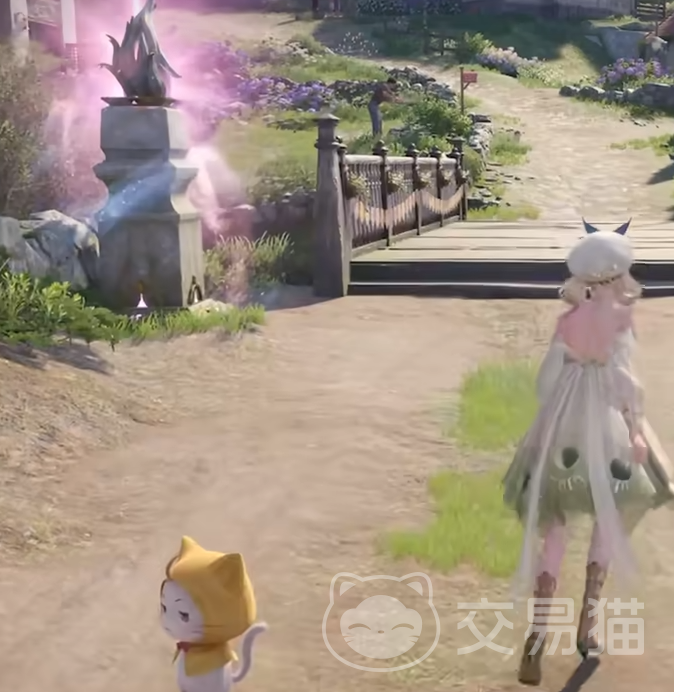 接下来大家便可以前往花愿镇,在路途之中会有着一些宝箱和奇想星,这些都是需要咱们来进行收集的。在收集的途中会看到有一个石像,这个石像是解锁大地图所用的,我们记得要去进行解锁。之后在走到一处湖泊旁会解锁剧情。