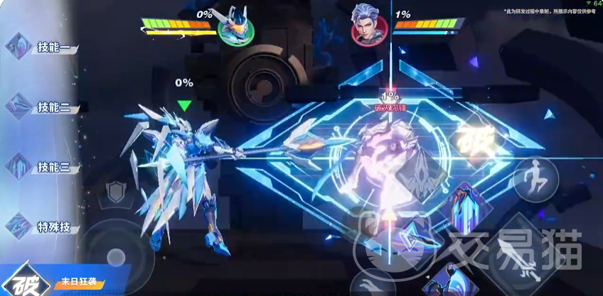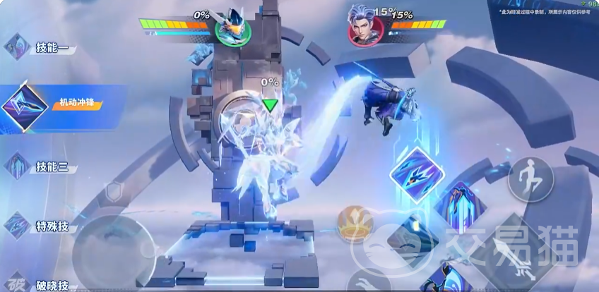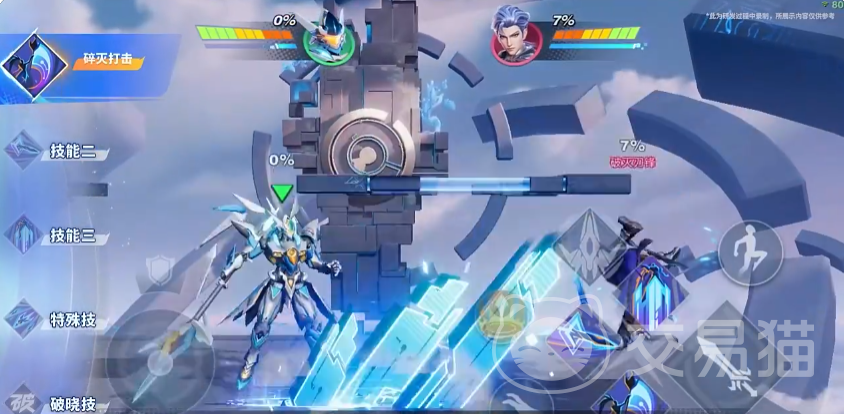技能当然比基础普攻更加炫酷。一技能“碎灭打击”,使用长戟直接将对手挑飞,同时会在地面划出延迟喷射出去的能量波,此时他如果在板边的话,因为前方没有地面的原因,所以不会生成能量波,在空中使用一技能会直接向下俯冲攻击,一旦命中可以再次挑飞敌人,该招式具有延迟攻击的特性,所以对近战类的英雄是非常克制的,让对手很难进行反打。