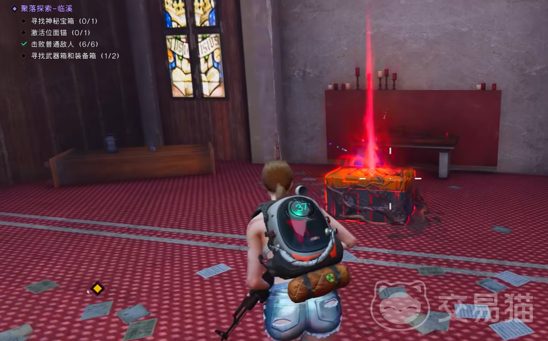 之后可以来到教堂位置,教堂的装备箱子较为特殊属于战利品箱,能开出露营刀的蓝图碎片,外部颜色是红色因此更为显眼,一般来说容易刷新到教堂中央的讲礼台上,但要注意由于教堂的椅子也带有一点暗红色,因此有时候也会刷新在椅子附近,很容易看漏,而且此处还会刷新部分怪物,只有击败之后才能拿到讲礼台上的红色箱子。其次在教堂旁边的墓园有一个能够直达房顶的楼梯,到达楼顶之后前往塔楼建筑中,在上层房子里就能看到武器箱,一般常规奖励是星团+手雷+铜质子弹+钢制子弹以及转能电池,但是能有概率开出完整的蓝图或是光学瞄准镜、电磁感应器这类较为稀有的装备配件。