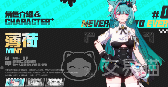 第二个登场的角色是薄荷,游戏中的看板娘,在异象管理局的收容二组中担任组员的角色,其整体形象上是一个非常可爱又俏皮的猫耳娘,性格外向活泼人缘非常好,也是剧情故事中的搞笑担当,负责在很多的剧情里进行吐槽,不过有些天然呆,老是会被异象的演技骗到,是收容组里被异象所骗的最多次数的人。