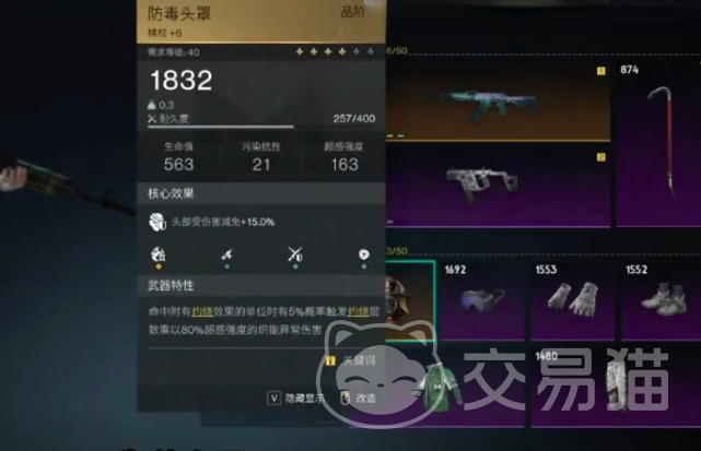 第二种搭配主武器是凝视深渊,副武器是冰雨,之所以选冰雨这把枪是因为在武器被动的设定上为换弹后首次命中可触发冰霜漩涡,所以玩家可以先掏出冰雨,然后进行换弹操作,之后换弹完a一枪,再切回凝望深渊就可以直接触发冰霜漩涡,接下来再说说装备搭配和模组搭配,装备搭配的话,防毒头罩、蜉蝣护目镜以及猎鹰4件套,之所以要使用防毒头罩,是因为他与这种冰ak一起搭配使用,可以达到更强的寒霜效果。