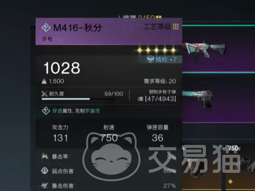 第四把武器推荐是m416秋分,作为一款耐久度非常不错的步枪,同样可以让玩家们在游戏当中有着非常不错的发挥,这款紫色枪支在玩家成功进行敌方命中后,可完成重装阵地的出发,并且CD 15秒,当然除了这些在所属阵地范围内还可以回血4%,当玩家自身的血量超过75%时,则该枪支的伤害可提高25%,但建议玩家不要将其作为主武器使用,可以选择搭配静默归途一起使用,同样可以发挥出非常不错的表现。