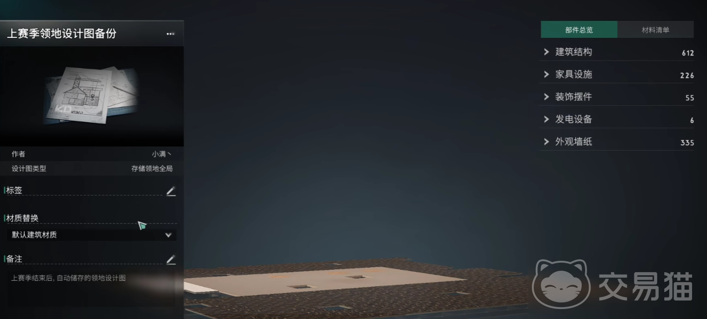 游戏中的设计图配置和玩家能够打造的家具内容息息相关,如果玩家想要尽可能的增加自己领的设计的繁荣度,则需要更多的在加工台当中解锁加工方案,随后在配置各类型的异常物品作为游戏家装当中的填充物。