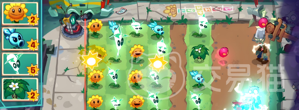 接下来是对局方面建议在后排放一些可以产生阳光的植物,然后在阳光植物的前面种植伤害值较高的植物。放在第1排的自然就是拥有较强防御力的植物。其余的位置就没有太多的限制性,主要是针对这一次的关卡。例如可以在最后一排放向日葵,然后在向日葵的前面种植一些豌豆射手,在豌豆射手的前面可以种植坚果墙,利用这一个方法,就能够有机会通过这次的关卡。