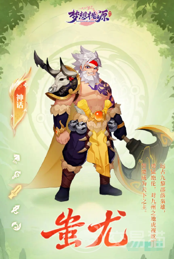 蚩尤在游戏中是一个神话品质的角色,定位为物理输出。他的一技能“斧力狂斩”能对敌方横排两个目标造成伤害,目标越少伤害越高。随着等级提升,他的技能还会不断增加敌人数量。而“破天一斧”则是有着对单体的超高输出能力,并附加暴击率,暴击时还能追加攻击。此外,蚩尤的“魔王降临”和“噬魂斧”等技能,也让他在群体和单体输出方面都有着不俗的表现。