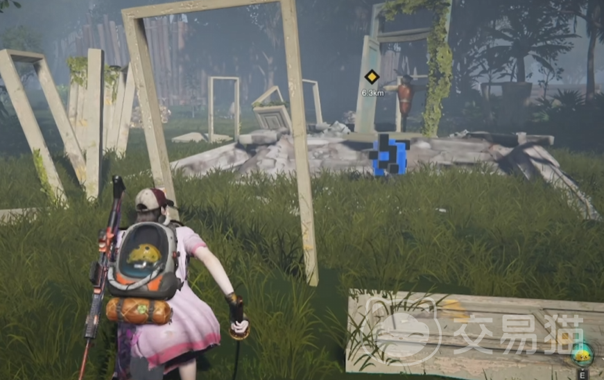 下一个位置在地图上能够清晰的看到一个巨大的黑点,我们直接来到这里之后,将面前画板上的画作打开就可以拿到一个藏宝图,之后我们回到旅人营地过一个三字路口进到一个蓝色的圈里面进行互动,完成任务互动的任务就可以拿到配件啦。